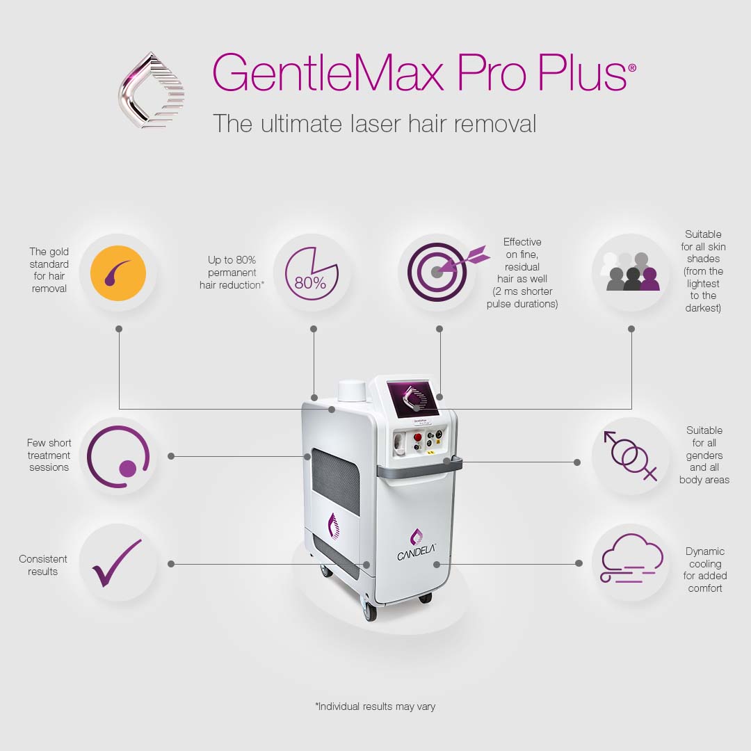 The Candela GentleMax Pro Plus is one of the most advanced laser platforms available. Combining two wavelengths in a single device, it targets every hair type and every skin tone — from the fairest complexions to the deepest melanin-rich skin — with precision, comfort, and confidence.